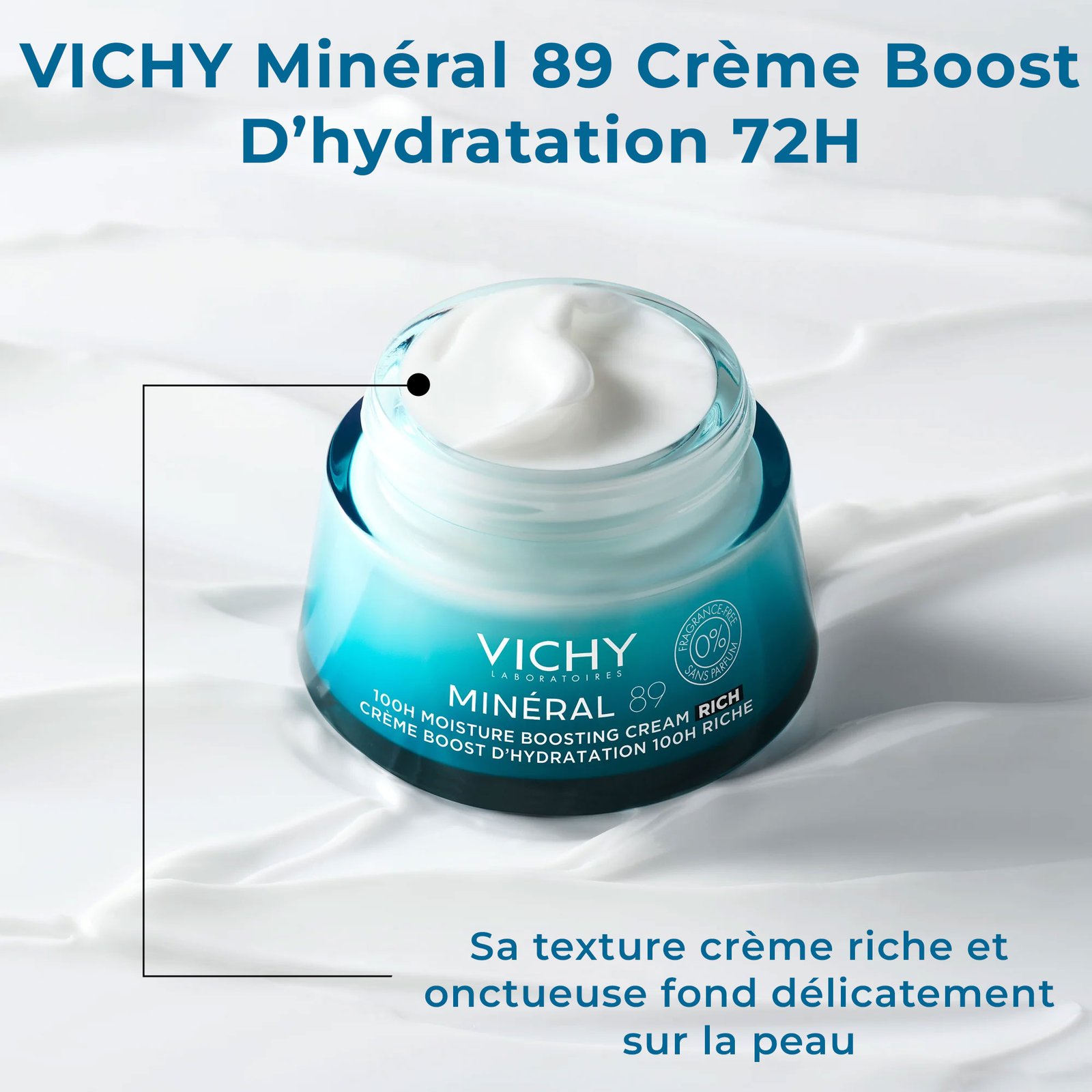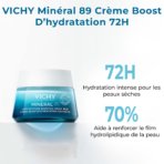 La crème riche VICHY Minéral 89 Boost d’Hydratation 72H est un soin indispensable pour les peaux sèches en quête d’une hydratation profonde et durable.
